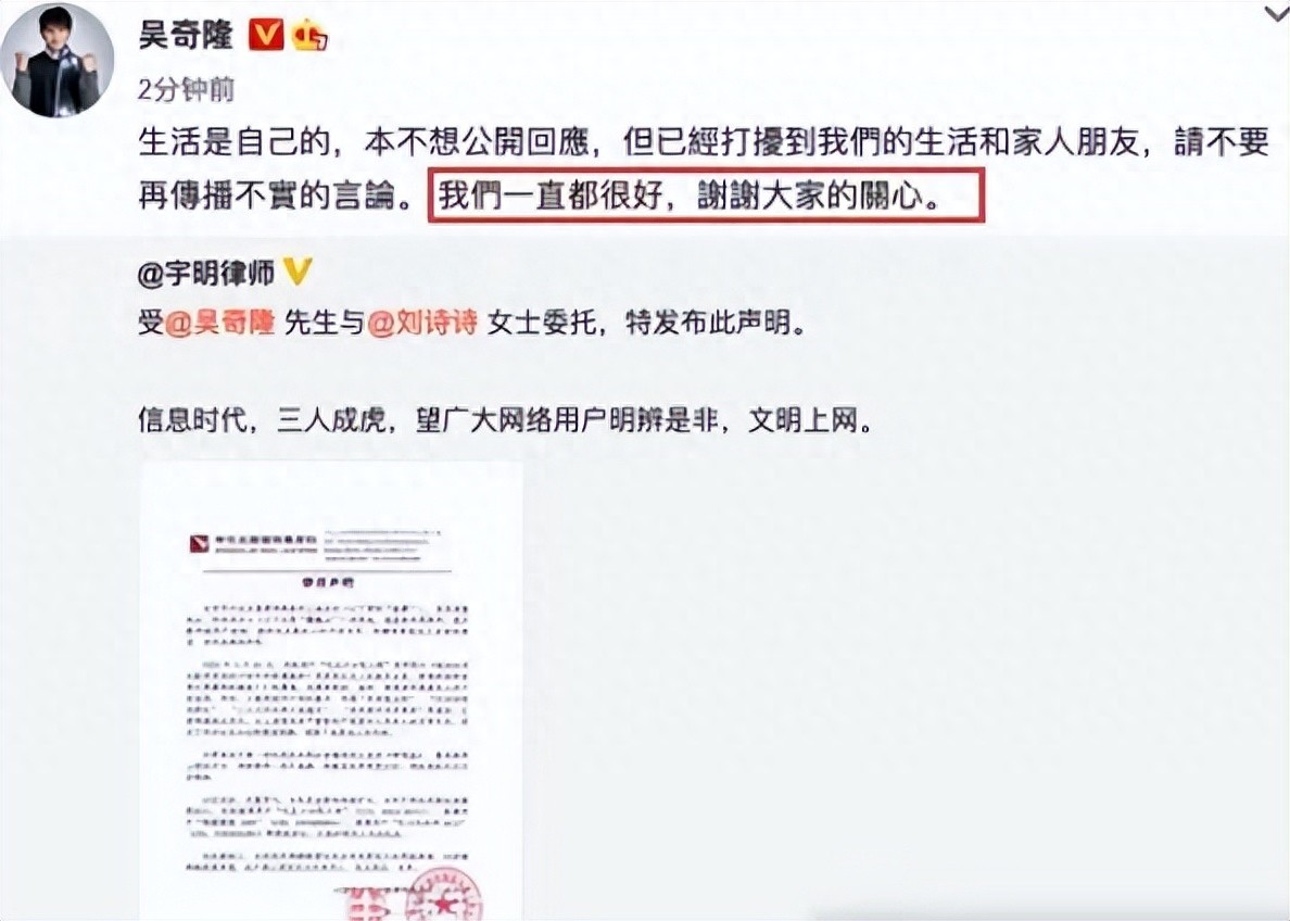 同时也希望吴奇隆和刘诗诗能够好好地。