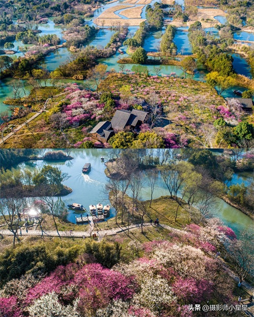 在梅花的簇拥下,西溪湿地的美景更是如诗如画。这里的湖泊、溪流、船只、小桥、芦苇等自然元素与梅花相映成趣,构成了一幅美丽的画卷。游人们漫步在湿地的小路上,欣赏着湖光山色,感受着大自然的美丽与宁静。而那些摄影爱好者们,更是以梅花为背景,留下了无数美好的回忆。
