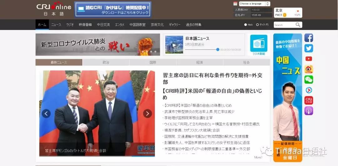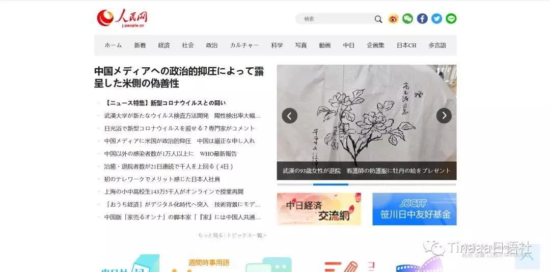 人民网中文版。国家权威报刊的日文版。