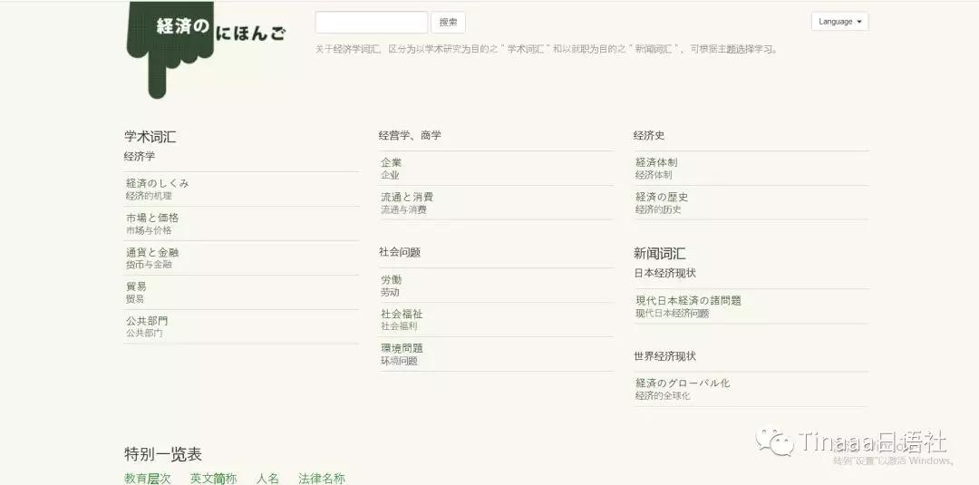 经济日语。关于经济学词汇查询和学习的网站,区分为以学术研究为目的之"学术词汇"和以就职为目的之"新闻词汇",可根据主题选择学习。