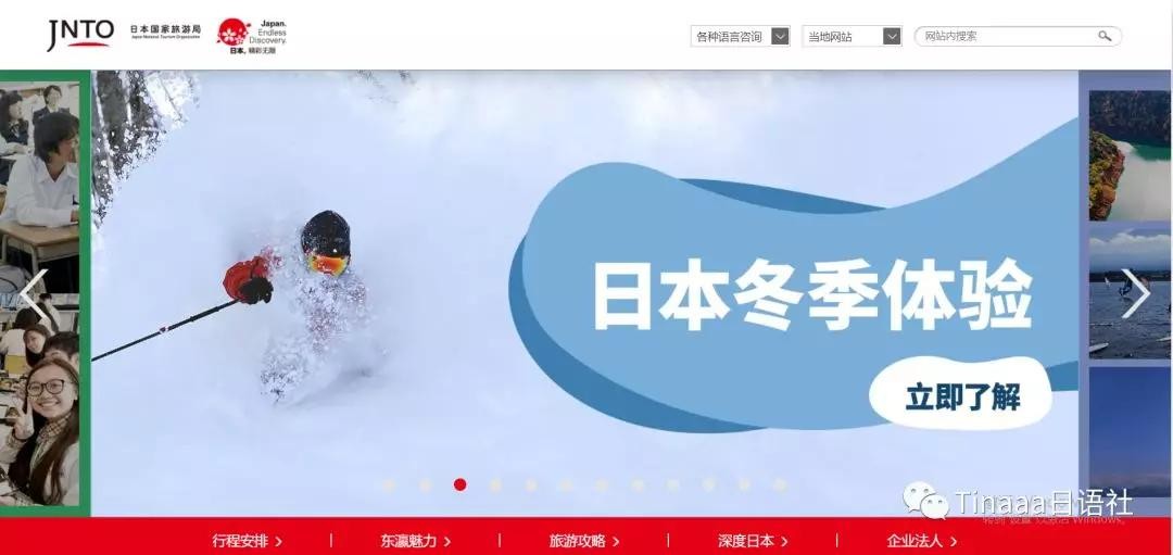 日本国家旅游局官网。一进去,就可以选择语言。很便利。提供了地域、主题等不同需求的旅游路线推荐。不仅介绍日本的文化、景点,还有各种特价车票的科普。自由行的小伙伴必去的网站!
