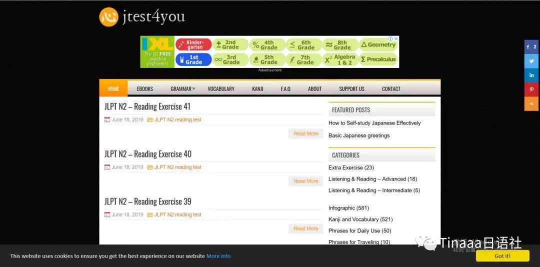 Jest4You日文网站。很专业的日文单词、语法的网站,是面向英语国家的人学习日语的。例句和练习很多,如果你的英语还不错,可以充分利用起来。