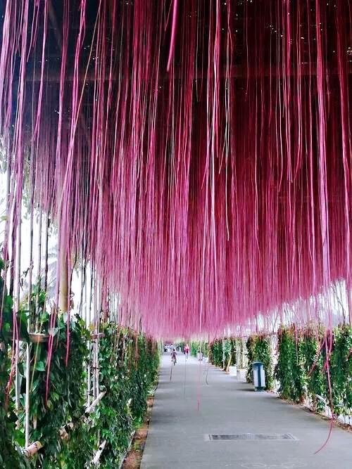 锦屏藤,别称:富贵帘、蔓地蓉、珠帘藤、一帘幽梦。葡萄科、白粉藤属、多年生常绿草质藤蔓植物。因其气生根线形,可分生多条侧根,初为紫红色,质地光滑脆嫩,老熟后呈黄色,且柔韧,下垂生长形成屏帘状,奇特而美丽,因此,得名锦屏藤。