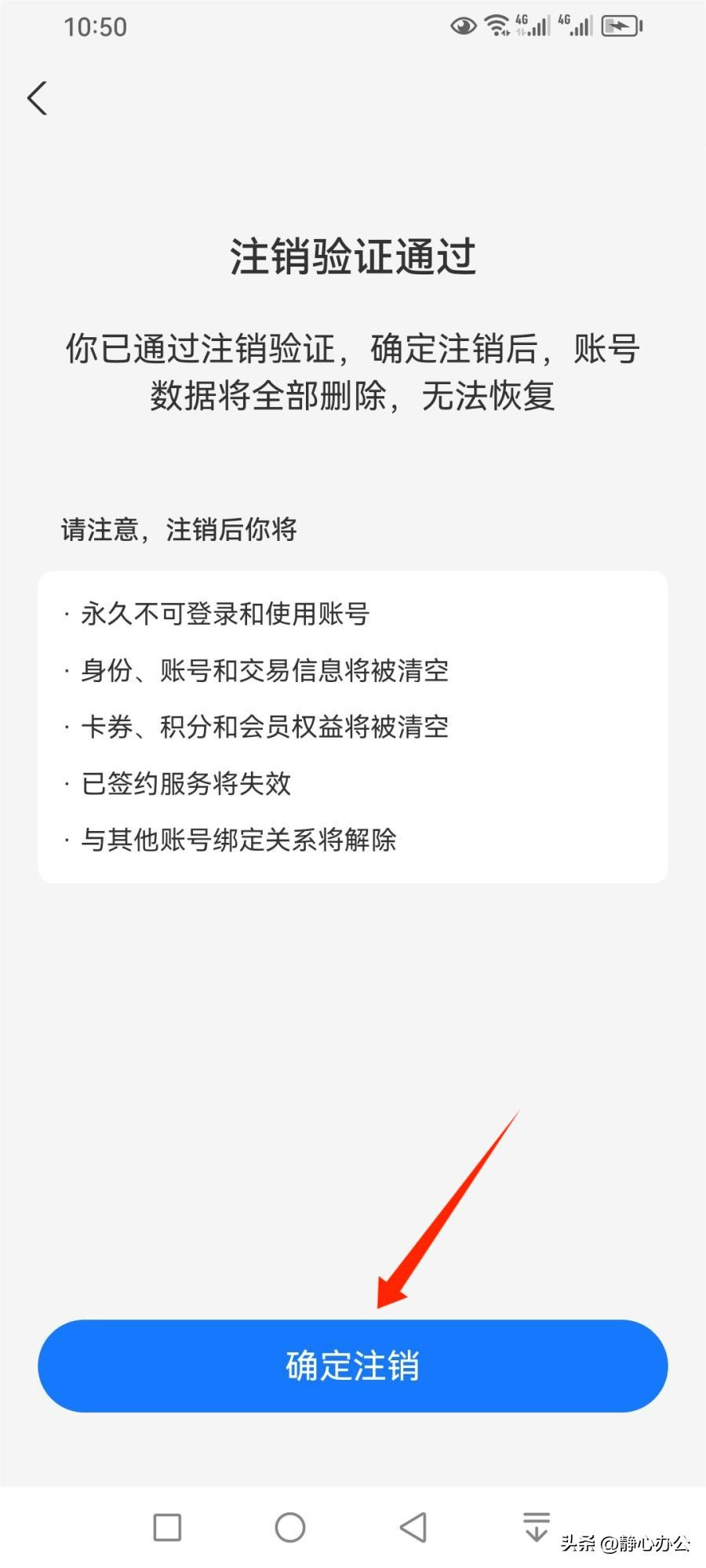 等注销验证通过后,点击【确定注销】即可注销该支付宝账号。