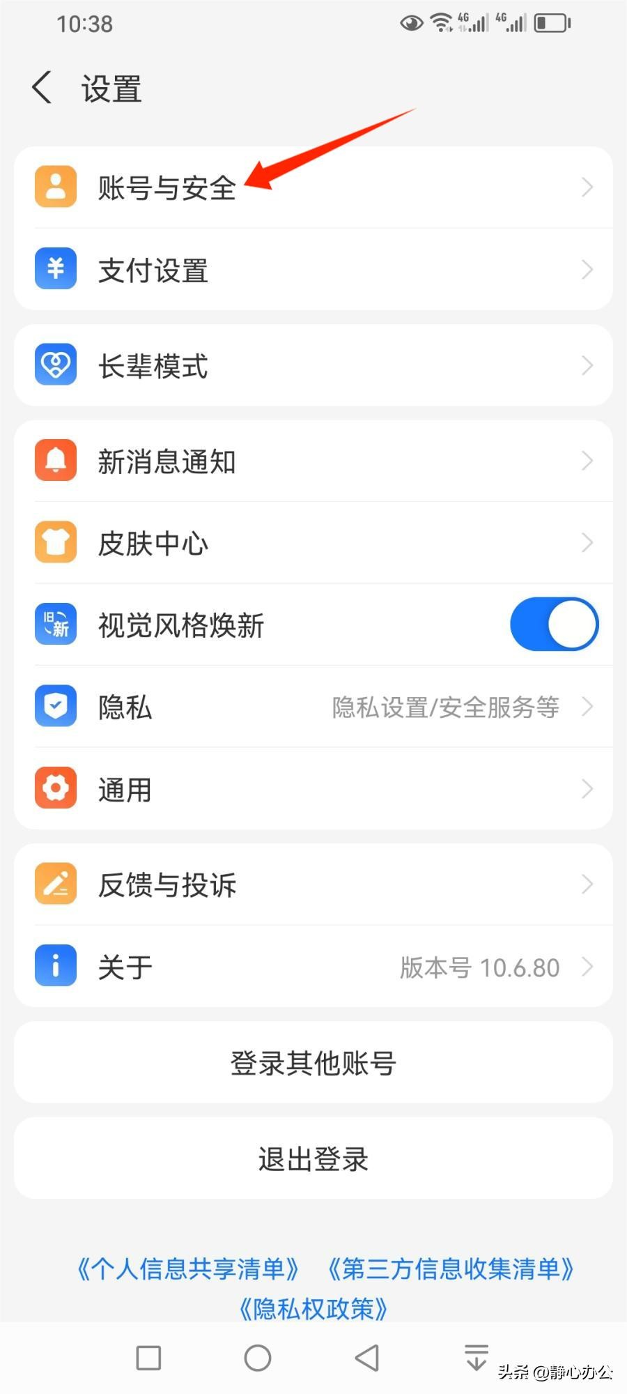 在【设置】界面,点击【账号与安全】。