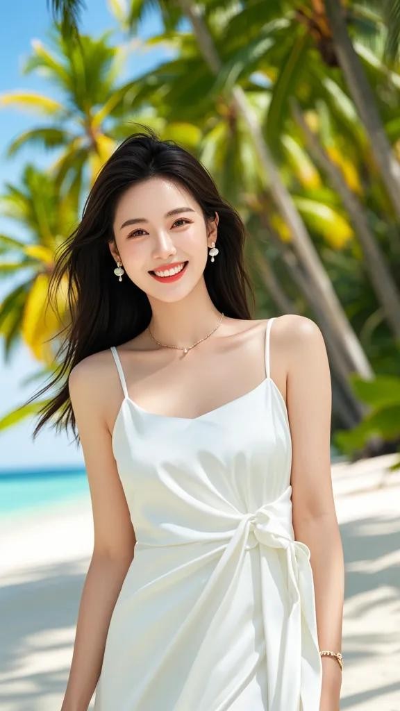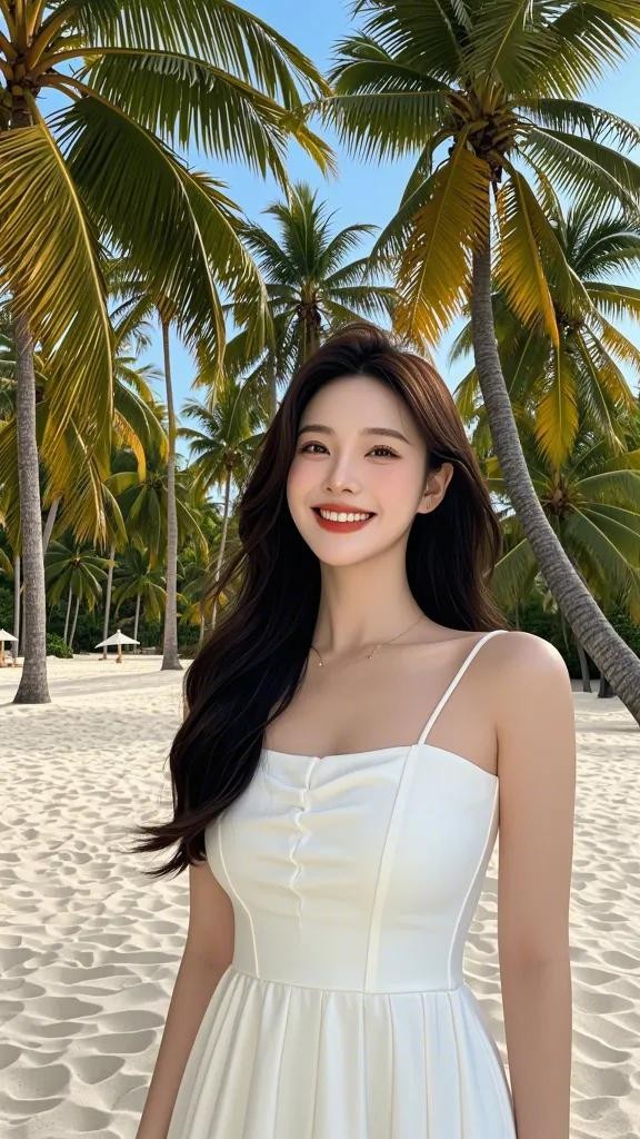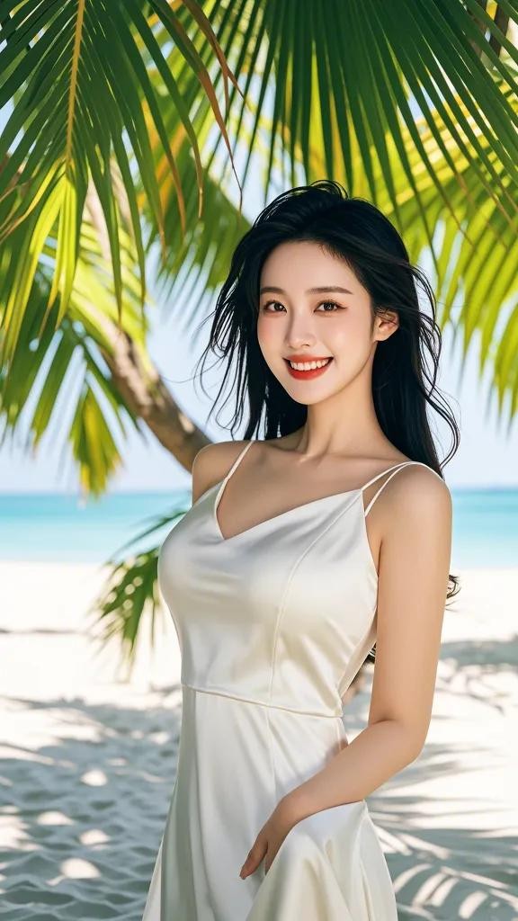 茂名中国第一滩的魅力 茂名中国第一滩以其得天独厚的自然景观而闻名。这里的沙滩绵延数公里,海水碧蓝清澈,椰林摇曳生姿。正是这片美丽的海滩,吸引了无数游客前来游玩。而那位身穿白色吊带裙的美女,在这里留下了一系列令人难忘的照片。