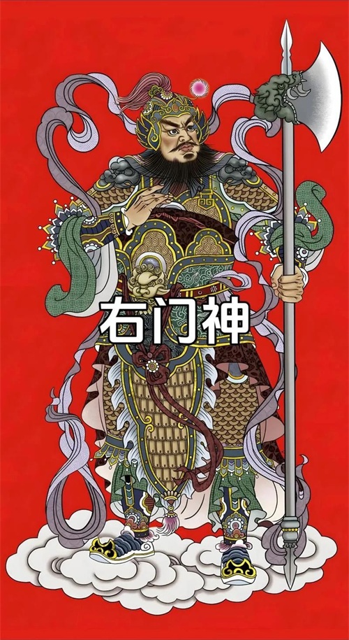 - **武力象征**:门神多手持兵器、怒目圆睁,以威严形象威慑邪祟,寓意“镇宅护院”。