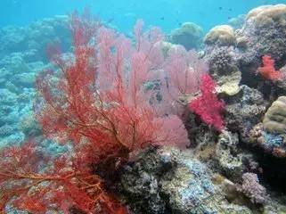 这些千姿百态、五彩缤纷的珊瑚骨骼在海底构成了巧夺天工的水下花园。