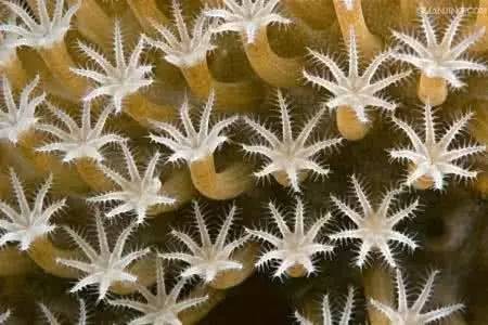 它们不仅将这些“建筑”造在一起,在一起觅食,它们还共用一个“肠胃”,因为它们的“肠道”(科学家称之为肠腔)也连在一起。所以,就造成了珊瑚虫群体有许多“口”。
