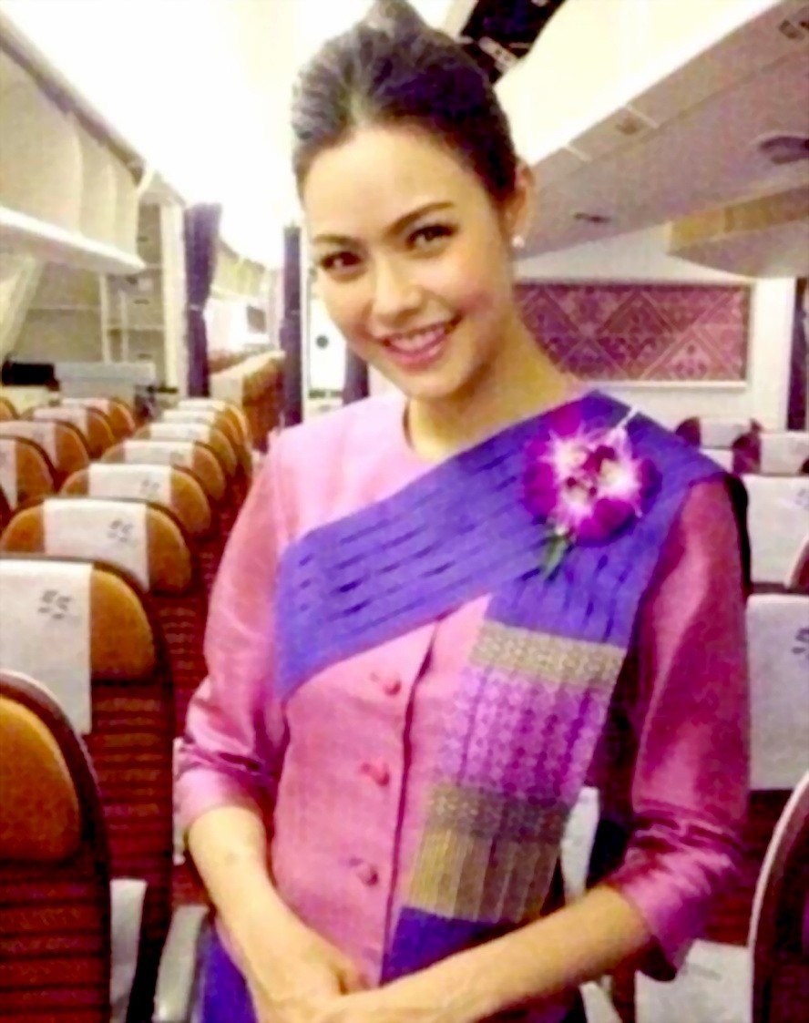 泰国航空公司的空乘人员在飞机上穿着传统的民族风装,这位空姐的笑容让大家的心都融化了。
