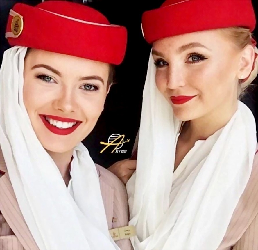 阿联酋航空的空姐,妆容精致,具有特色的装扮也十分有魅力。
