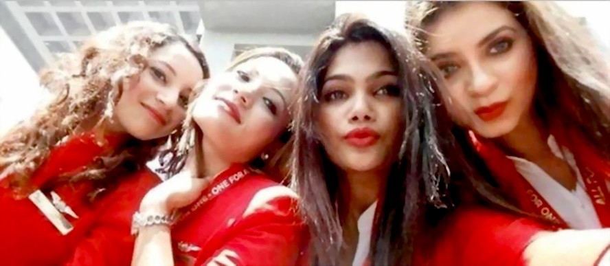 印度四位空姐,从照片中可以看出,她们都掌握了很好的自拍技巧。