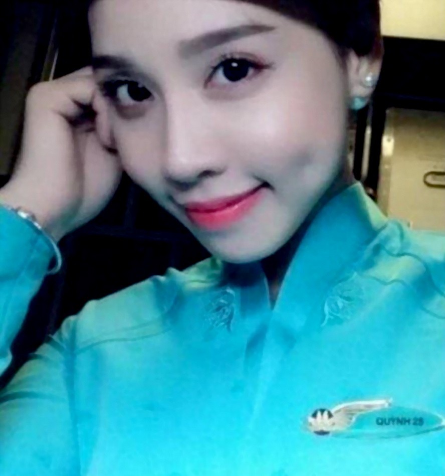 小酒窝、大眼睛和翘挺的鼻子让这位越南航空公司的空姐显得清纯可爱,她身上的衣服是当地的传统服饰。