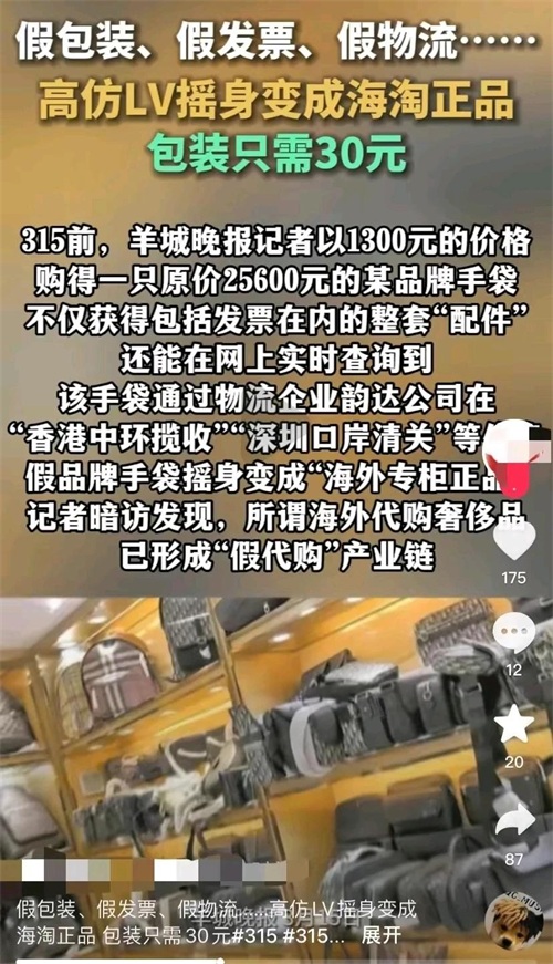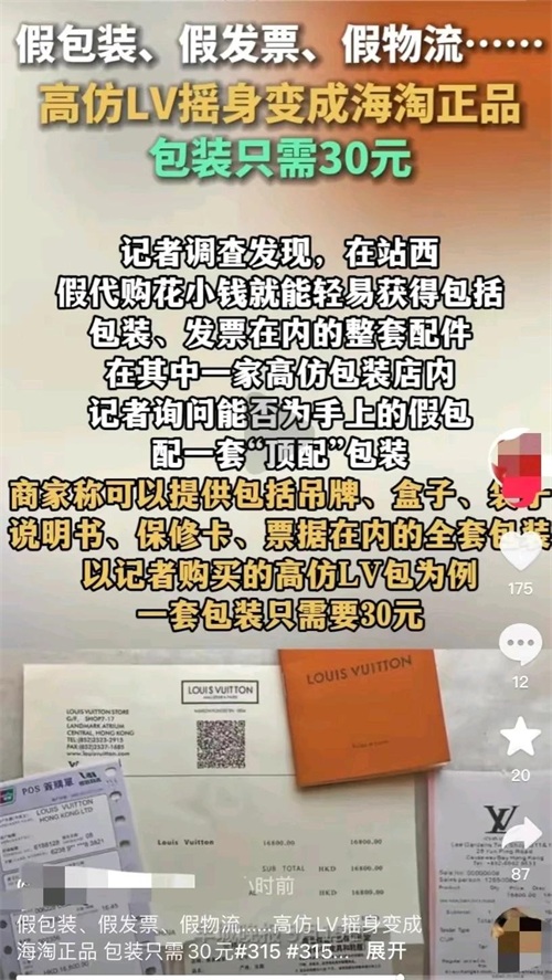 高仿LV包装只需30元,看似便宜实则隐患重重。让我们一起抵制假冒伪劣产品,共同维护一个公平、健康的消费环境!