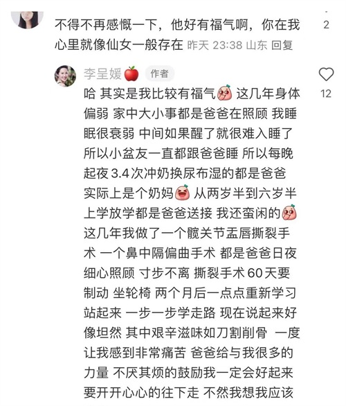 李呈媛在社交媒体上分享了自己的经历和感受,也让更多的人看到了她背后的坚韧和勇敢。她用自己的故事告诉大家,无论遇到什么困难,都不要轻易放弃,要相信自己、相信爱情。同时,她也感谢了丈夫鄢颇一直以来的支持和陪伴,让他成为了自己生命中最重要的人。