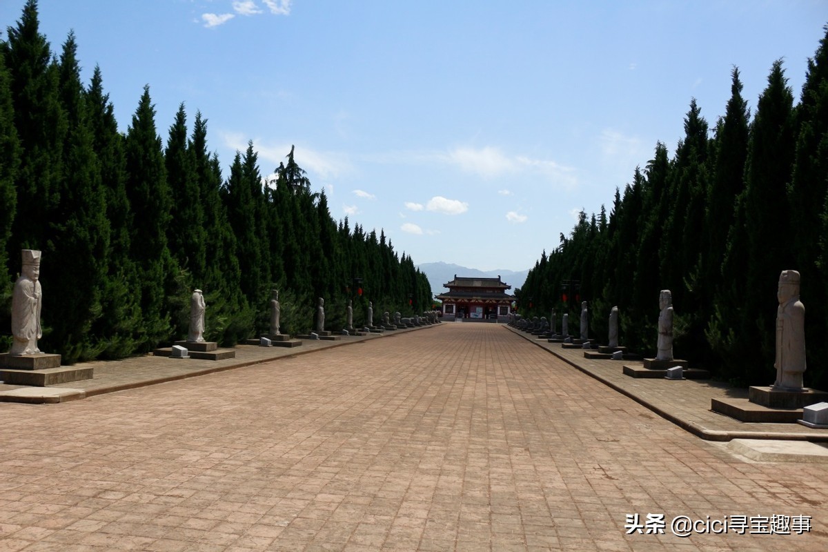 经过长长的神道,神道中的石像生有文官和武官,磨损或者破裂非常厉害的是原件,在2001年原地挖掘的时候挖出来的,其余的就是复制件,前面的华表右边破裂的是唐末原件,大家可以到时实地去喵喵。神道过后就是秦王和夫人的祭祀大殿——秦王殿,进了秦王殿左右两边就是地宫。