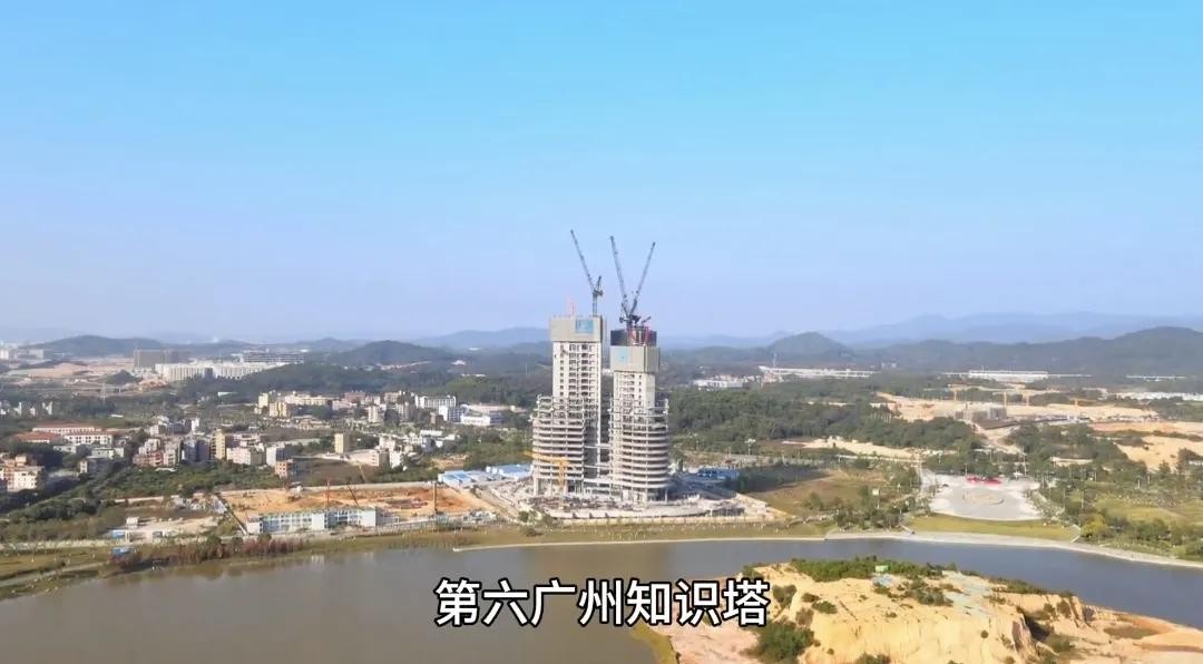 “知识塔”是中新两国合作标杆项目,将成为知识城内最高地标建筑矗立在九龙湖畔。建筑高度330米,集办公、酒店、商业于一体,是知识城内最高的地标建筑。知识塔早在2020年7月就开始动工,2021年10月完成塔楼底板封底,2023年11月实现主体结构封顶,预计将在2026年正式投入使用。