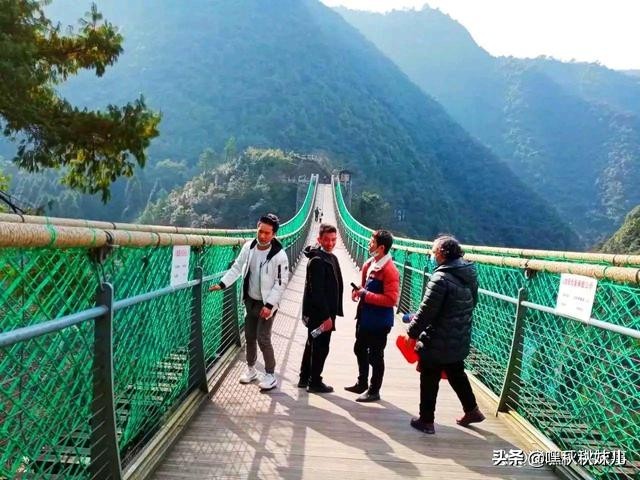 穿黑衣服的是我妈,她怕铁索桥不敢过