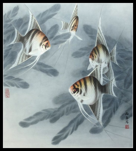 路雨年工笔鱼作品欣赏