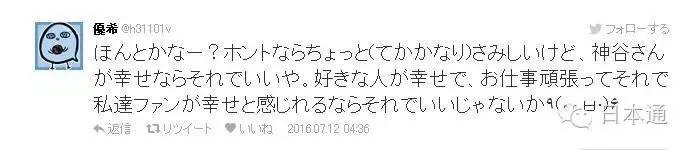 真的假的?如果是真的话,虽然有点寂寞,不过神谷幸福就好。喜欢的偶像能幸福、工作加油,我们粉丝们为此也感动幸福,这样不也挺好的。