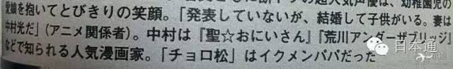 据日本周刊杂志爆料,日本著名声优神谷浩史与创作了《荒川爆笑团》等漫画的有名漫画家中村光结婚并育有孩子。此前两人就被爆已同居。此外,据说女儿年龄为4岁左右,于2011年出生。