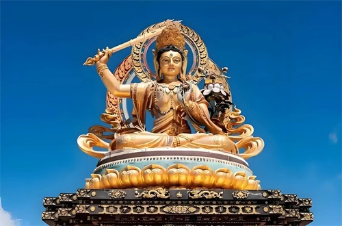 文殊菩萨代表智慧,常被称为“智慧第一”,与普贤菩萨同为释迦牟尼佛的左右胁侍。文殊菩萨被视为一切众生的智慧父母。