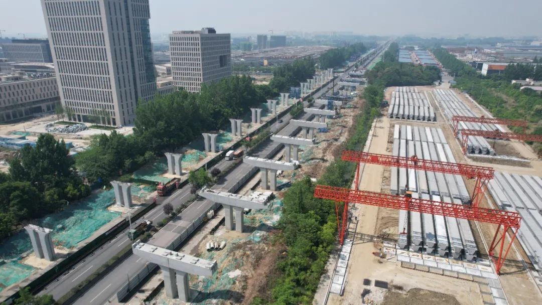 2021年10月,G5成绵高速扩容项目成金青连续高架桥,六片预制箱梁稳稳架设在桥墩上,标志着G5成绵高速扩容项目成都段高架桥首跨梁架设成功。