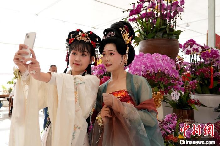 “在这里既能欣赏我喜欢的蝴蝶兰,又能体验汉服造型,真的很开心。”游客卢素萍说。