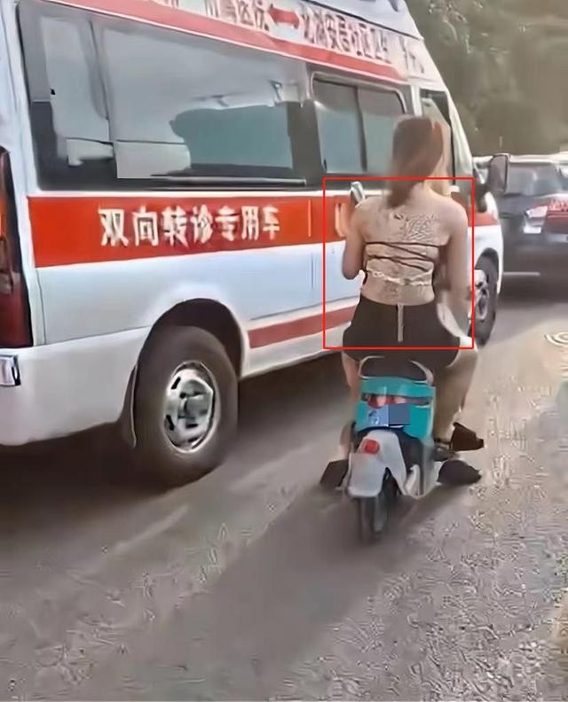 有网友拍到两位20出头的年轻女子衣着清凉着装暴露,满背文身,全身衣服加起来没能遮住三分之二的肌肤,骑着电动车在街上行走。