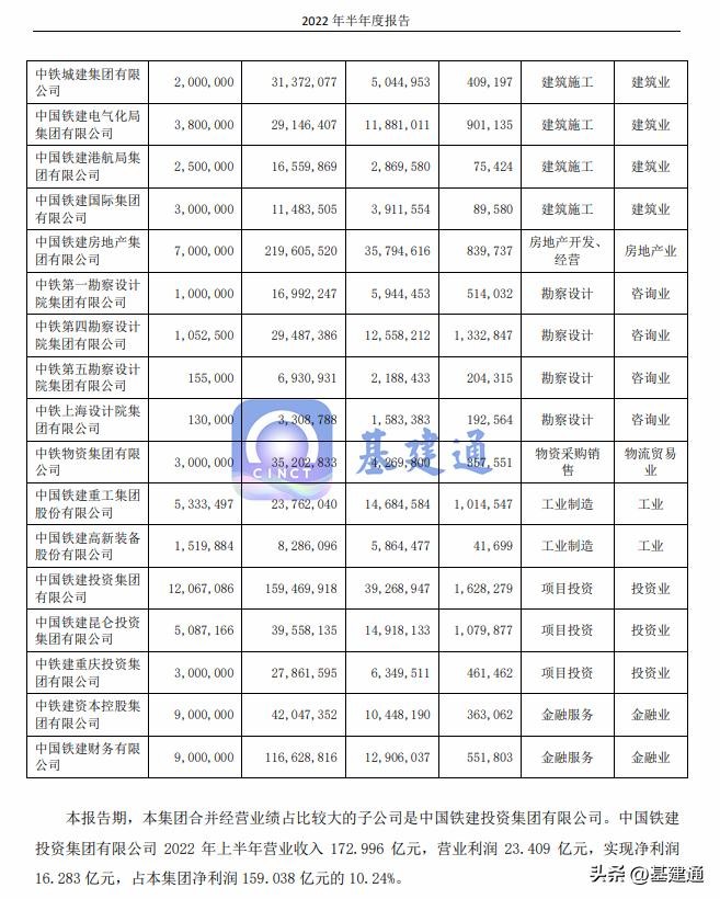 在投资类企业中,铁建投资集团的净利润是最高的。