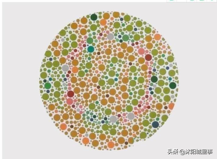 图二:这是一张没什么难度的检测图,图中的答案是“9”,大多数人能轻松辨认,不过红色色觉异常的人却无法辨别了。但是红色色觉异常也分为两种情况,红色色弱的人经过多次挣扎也能做出答案,但是红色色盲的会几乎不可能看出答案了。