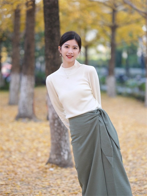 侧站可以更显瘦,同时,笑着看向远方的姿势会让人感觉照片是自然抓拍的。