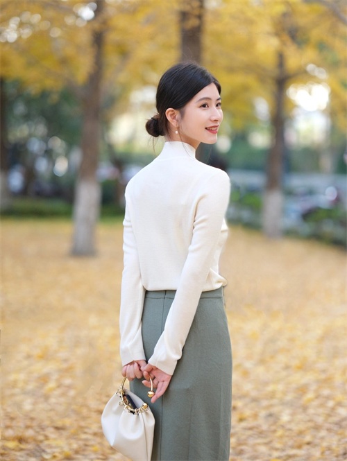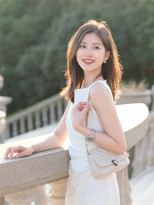 如果不想正面或背影入镜,可以尝试半侧身,手自然放在背后,回头微笑望向一旁,展现自然气质。