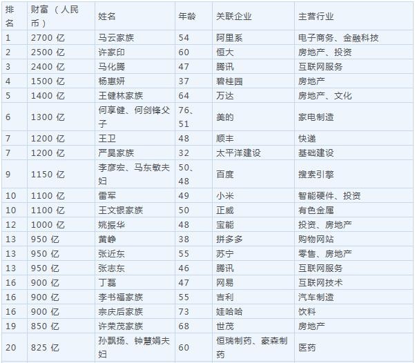 《2018胡润百富榜》正式发布,其中马云家族以2700亿元人民币排名第一,许家印(2500亿)、马化腾(2500亿)排名第二、第三”
