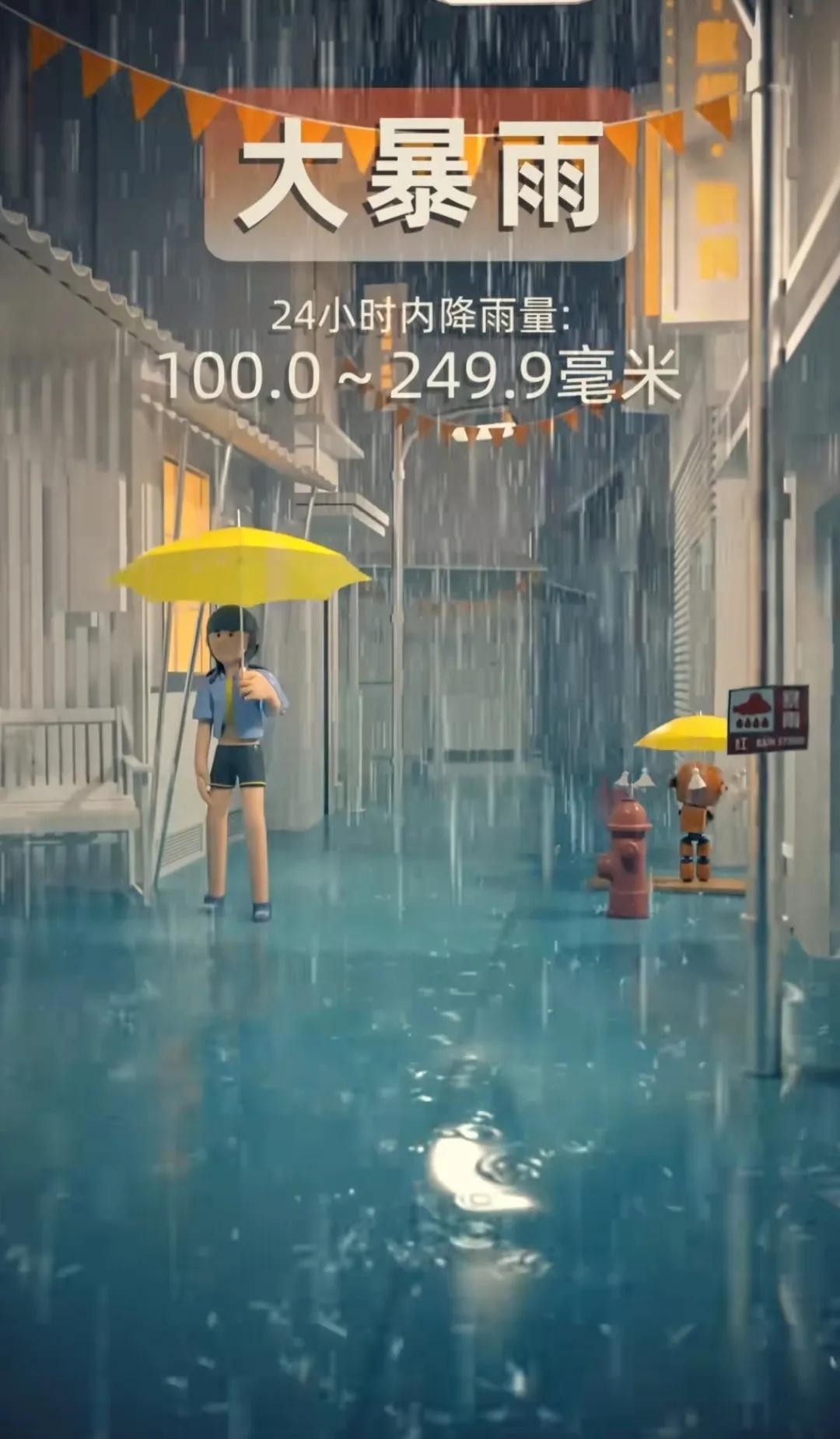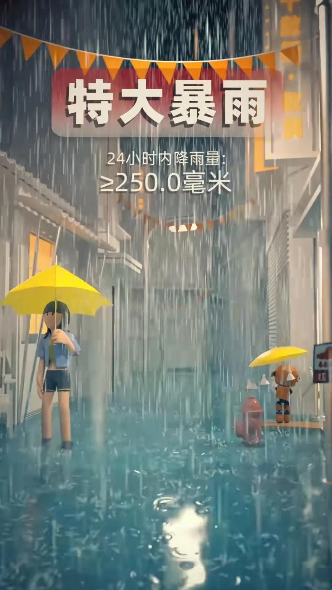 特大暴雨:降雨量超过250毫米降雨被称为特大暴雨,这种降雨量级非常罕见,但一旦发生可能会造成毁灭性的影响,引发严重洪水、泥石流等灾害。