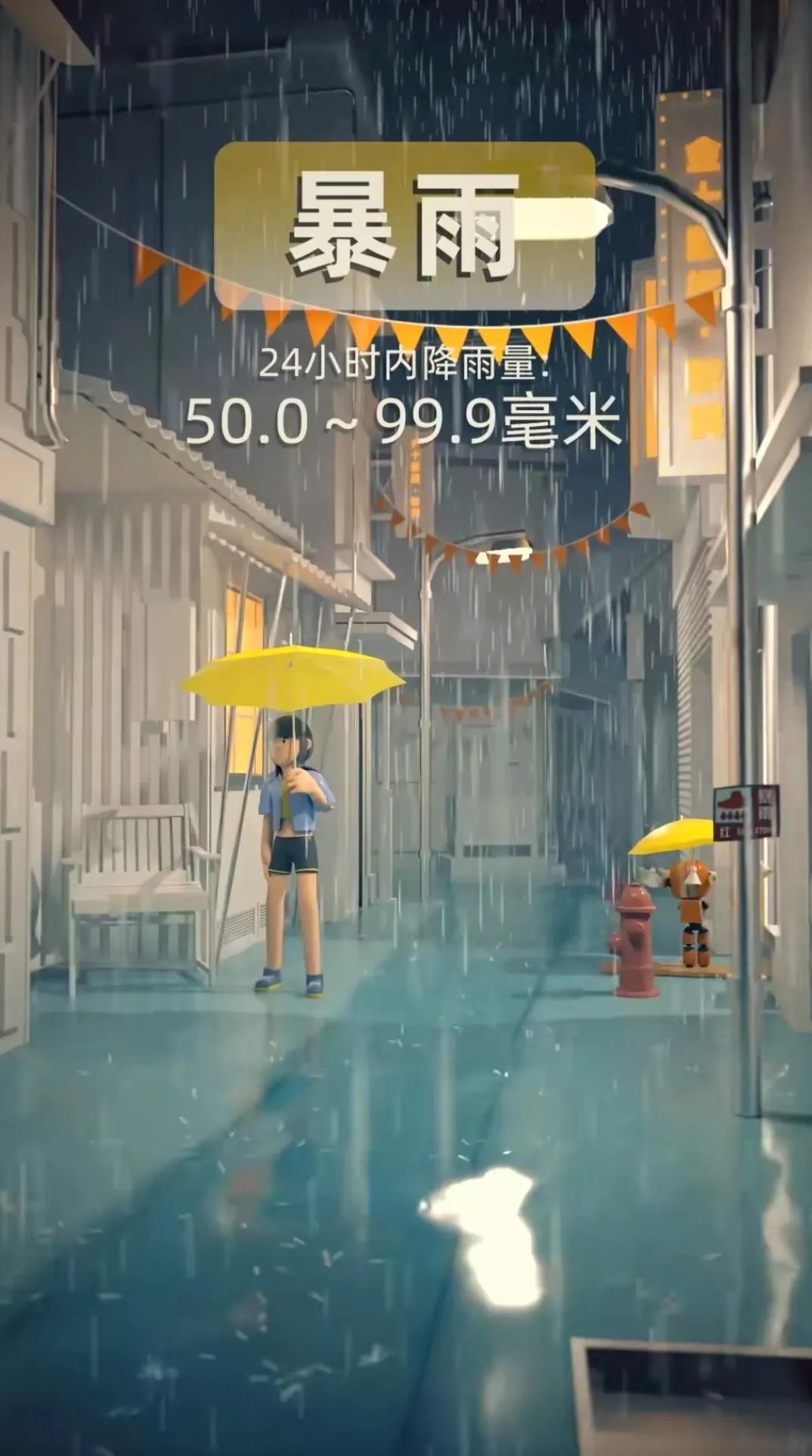 暴雨:24小时降雨量在50~99.9毫米之间的降雨被称为暴雨,这种降雨强度非常大,可能引发严重洪水和山体滑坡等自然灾害。