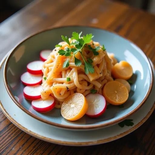 生拌老板鱼的制作过程简单而富有趣味,既适合家庭聚餐,也适合朋友聚会。它不仅是一道美味的开胃菜,更是一道健康的选择。老板鱼肉质鲜嫩,含有丰富的蛋白质和多种微量元素,搭配青萝卜的清脆和香菜的香气,使整道菜肴层次分明,口感丰富。