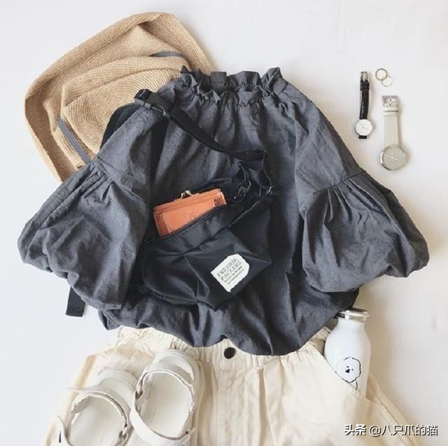 3.森女系穿搭=(棉质上衣、纯色长裙、帆布鞋)+(灰色、白色、蓝色)+(抽绳包、雨伞、手表)