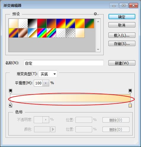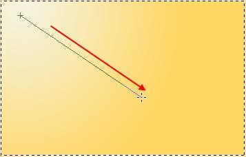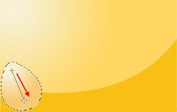 (2)选择“渐变工具”,然后打开“渐变编辑器”对话框,接着设置第1个色标的颜色为白色、第2个色标的颜色为(R:255,G:224,B:157),最后按照如下图所示的方向为“背景”图层填充使用径向渐变色。