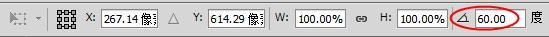 (6)按Ctrl+Alt+T组合键进入自由变换并复制状态,然后调节自由变换中心点如下图所示位置,接着在选项栏中设置旋转为60°,最后按Enter键确认操作。