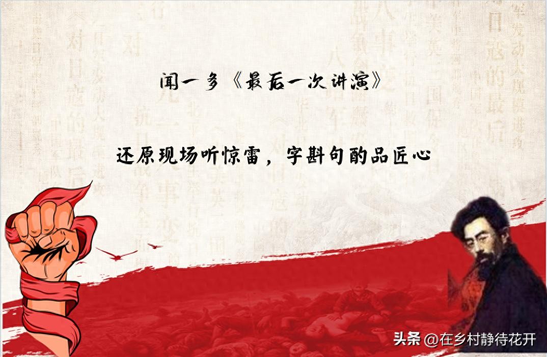 讲演结束后,闻一多先生也遭遇了暗杀,对他来说,这篇演讲稿也是他的光荣,让我们一起发出我们内心的最强音——