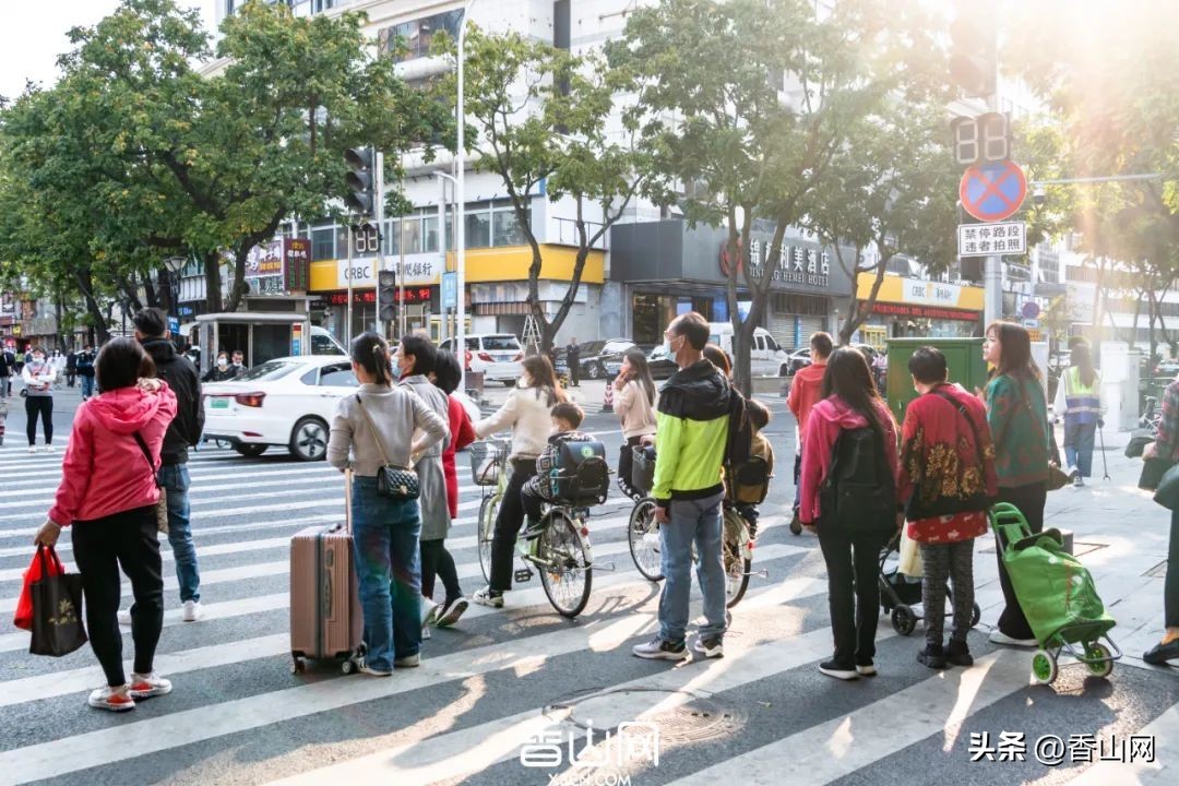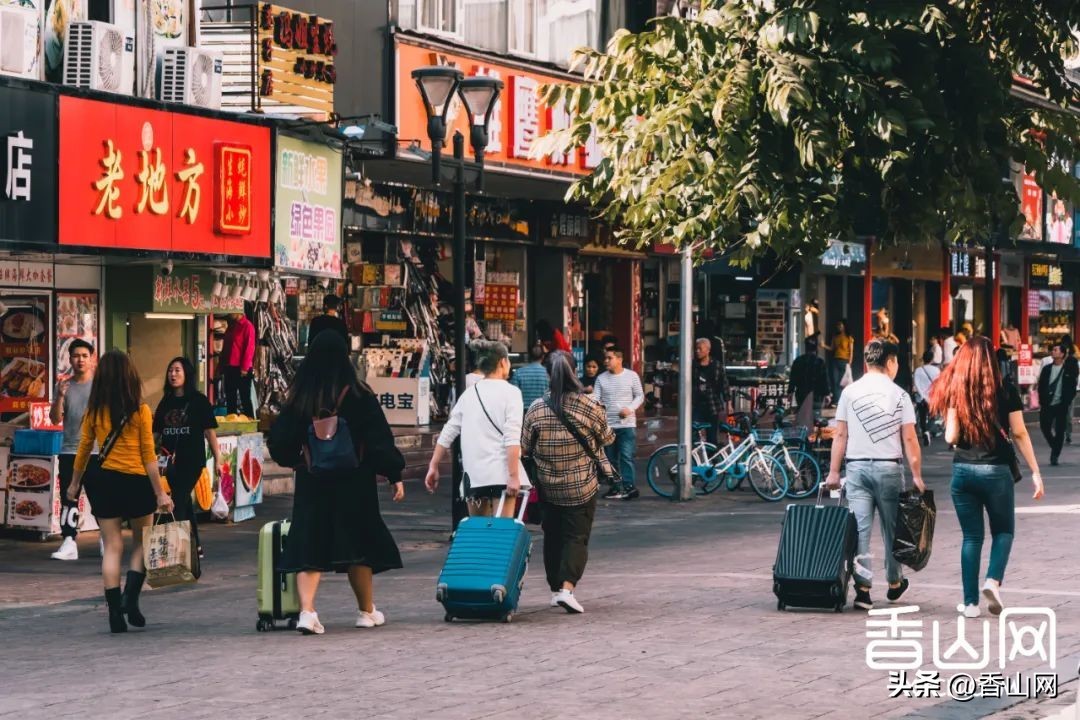 人们只有穿梭在街道,大包小包的旅客,拉着小推车的阿姨......