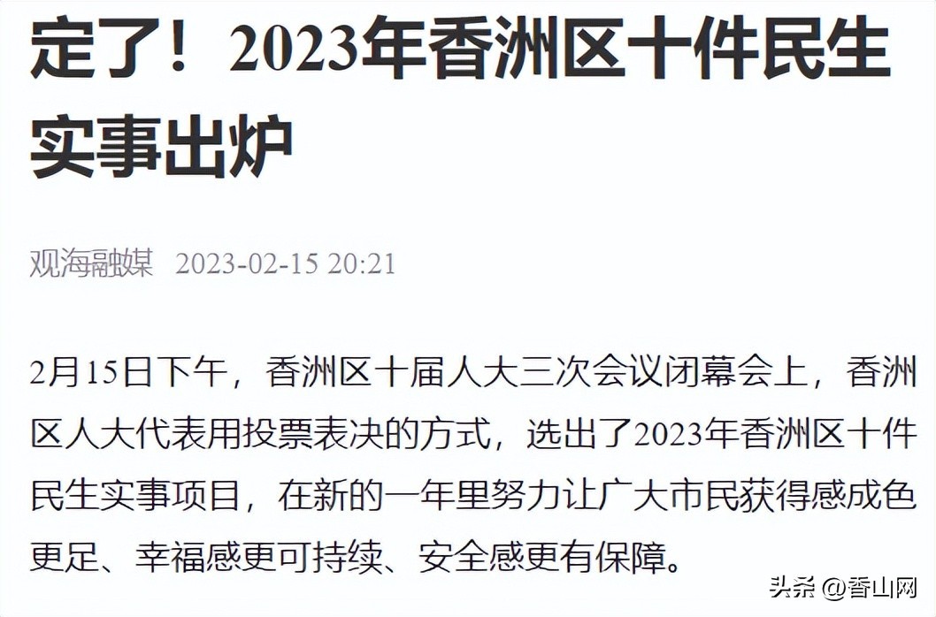香洲区十届人大三次会议闭幕了,香洲区人大代表选出了2023年香洲区十件民生实事项目。