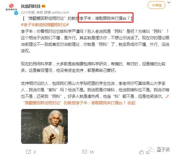 前阵子,燕京大学的李子丰教授又声称推翻相对论的新闻火了。