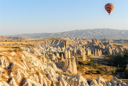 土耳其有这样几大特色:热气球,冰淇淋,盐湖……站在格雷梅观景台上看到远处迎着朝霞腾空而起的五彩斑斓热气球,与自己的相爱的人看到此番浪漫的场景,也将会成为彼此记忆中最难忘的美丽点缀。