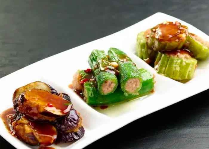 香港的煎酿三宝颇具名气,但对于吃过中餐的人而言,你会发现这道美食只是多个单款中餐菜肴的“融合小吃”。香煎茄子,苦瓜酿肉,油豆腐塞肉,青椒塞肉等等菜肴挑选三样装盘,