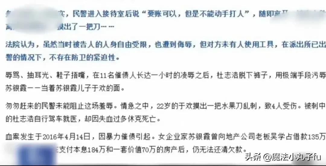 最后法院声称“不存在正当防卫意义的前提”,一审判决于欢故意伤害罪判处无期徒刑,后来一篇报道出来后,让这起案件又有了新的进展。