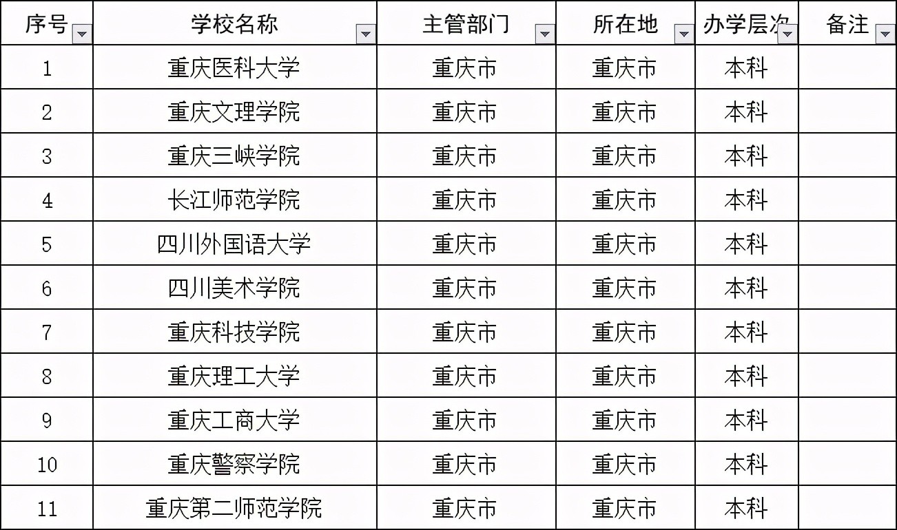 一、重庆本科院校有哪些?