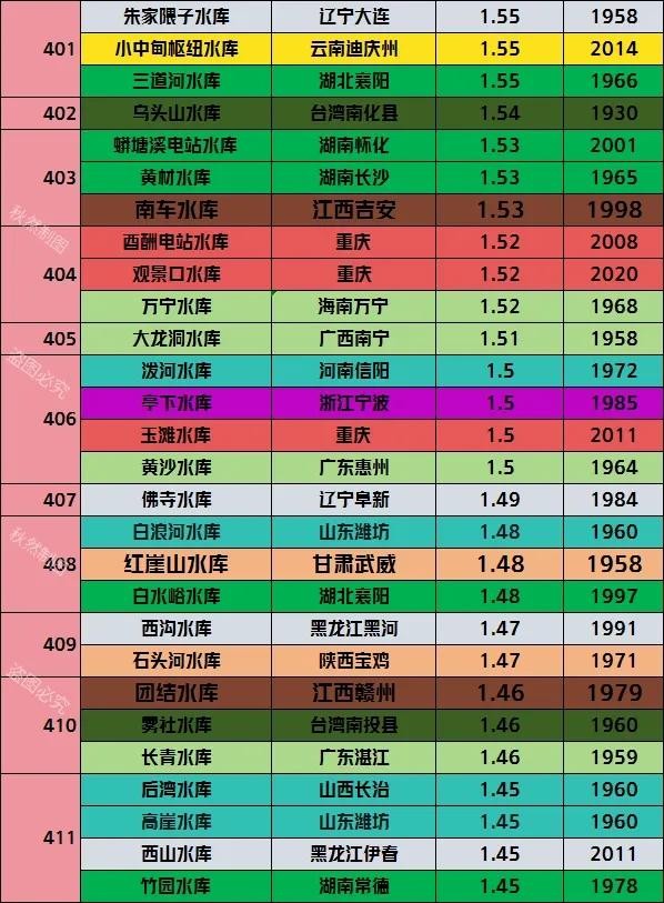 小编制图不易,还请大家点点关注多多点赞,小编先行谢过大家接下来会更新其他省份大型水库排名,如有漏洞,还请广大条友们补充。水库图片取自网络、感谢原作者,侵删。