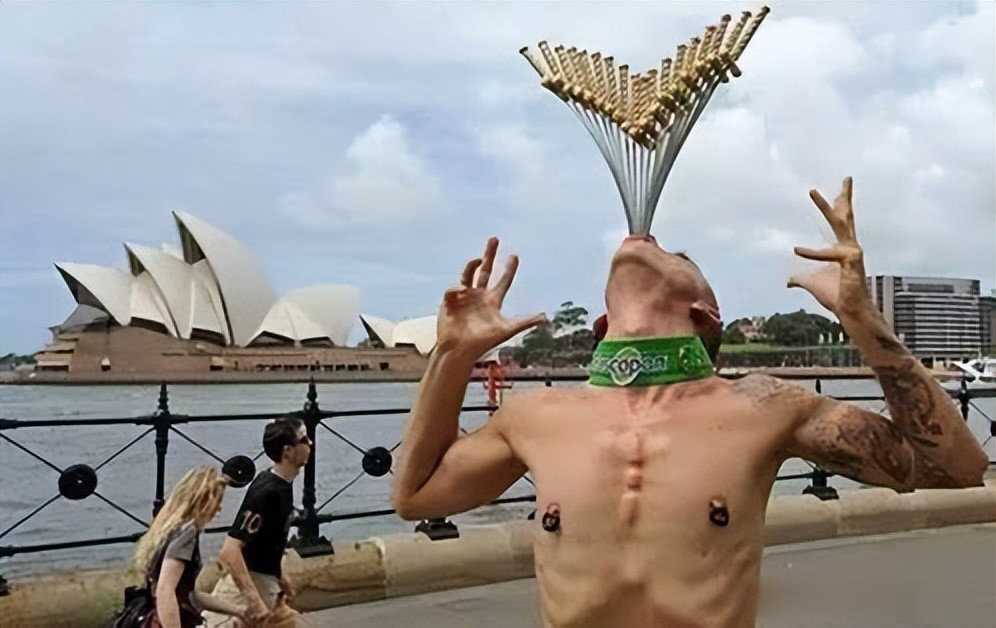 这位艺人是来自澳大利亚的一位街头艺人,他这个记录十分吓人,他的嘴里吞下了18把长剑,让人看了触目惊心。